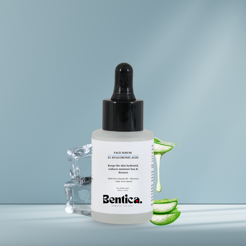 Plump, soothe, and hydrate your skin with Bentica’s 2% Hyaluronic Acid Serum.